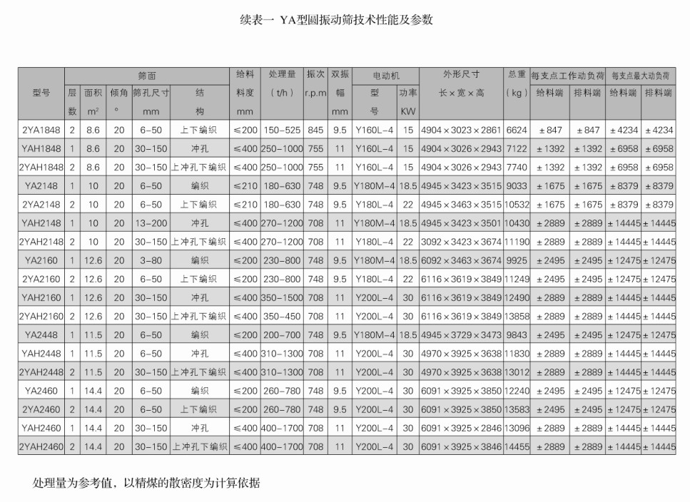 YA型圓振動篩可供選煤、選礦、建材、電力及化工等部門作物料分級用。
