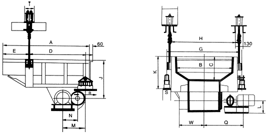 座式安裝時,安裝給料機底架的地面應平整。底架安放平整后,將支承彈簧放在彈簧支座上,使彈簧的內(nèi)孔對準彈簧支座上的凸臺、再將給料槽安放在彈簧上,給料槽應橫向水平,每端左右兩側的支座高度應相同,誤差不得超過3mm。所有彈簧必須處于垂直狀態(tài)。如有扭斜,應調(diào)整彈簧下面支座的位置??梢杂眉訅|片的方法調(diào)整給料槽的傾角和橫向水平度。
